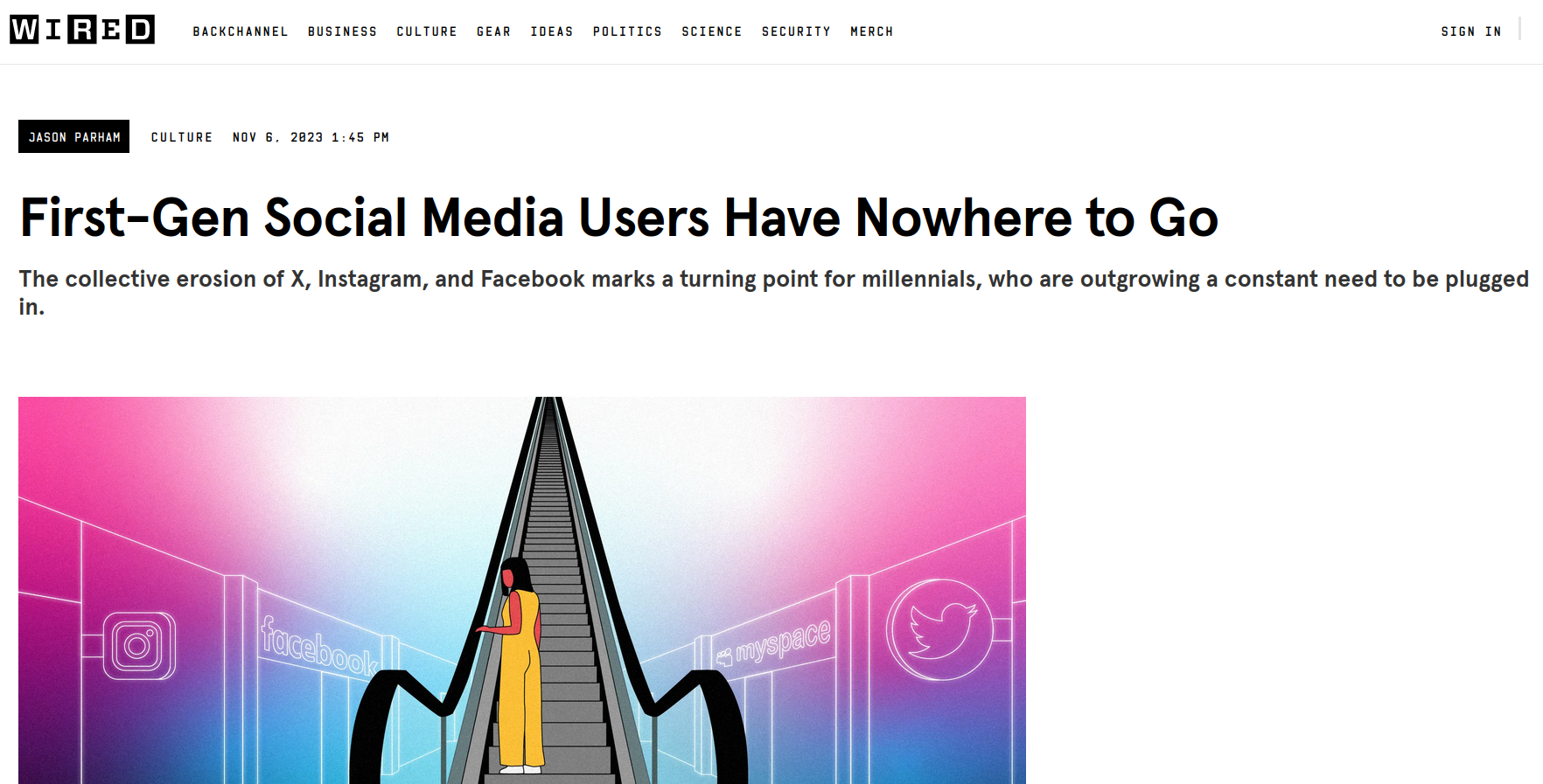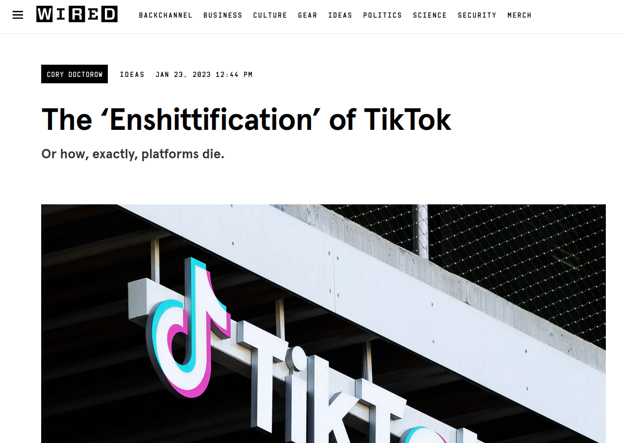 Ça y est, c'est la fin. Le web ferme boutique. Enfin, pas n'importe quel web, certes – le web social, celui qui domine l'écosystème de l'information depuis 2010. Vous n'êtes pas au courant ? Pourtant, les épitaphes se multiplient dans la presse tech (nocritique) depuis quelques mois, autant aux États-Unis que sur nos terres hexagonales. Petit florilège. Le 30 décembre, Wired décrivait 2023 comme "l'année où l'Internet millennial est mort". En octobre, le New Yorker nous expliquait, en se rappelant du bon vieux temps, pourquoi "Internet a cessé d'être fun" (spoiler alert : l'article décrit essentiellement le destin des réseaux sociaux, ce qui n'a pas grand chose à voir avec "Internet"). En avril, Ellis Hamburger promettait, après sept ans passés chez Snapchat, que "les réseaux sociaux sont destinés à mourir". Même son de cloche chez l'éditorialiste Ed Zitron, qui affirmait en février que "les réseaux sociaux sont en train de mourir", tandis que la LA Times balançait la même prophétie en août. Gradation finale dans l'oracle, certains médias, comme Business Insider ou Vice, affirment au présent que les "réseaux sociaux sont morts", et qu'ils auraient entraîné avec eux leur cohorte maudite d'influenceurs, de marketeux et de monétiseurs d'attention. (Cherchez "social media is dead" sur Google, et vous comprendrez l'ampleur de l'angoisse qui étreint la classe disruptrice des années 2010.) Même le réputé technocritique Ian Bogost se muait en prophète dans The Atlantic dès 2022 : "L'ère des réseaux sociaux touche à sa fin – et elle n'aurait jamais dû commencer."Pourquoi Internet a cessé d'être funThe New Yorker, 9 octobre 2023Il faut se rendre compte de l'énormité du virage idéologique pris par une partie de la presse spécialisée. Pendant plus d'une décennie, la croissance et la consolidation des oligopoles du Web a semblé si inexorable, si effroyable, si totale, qu'envisager les scénarios de leur chute relevait du blasphématoire ou du délirant. Une pandémie plus tard, des journalistes tech dansent joyeusement sur les cadavres des titans supranationaux de la décennie 2010, comme si c'était la chose la plus inéluctable qui soit. Est-ce réellement le cas, ou assiste-t-on simplement à la vague de nostalgie d'une génération d'ex-jeunes journalistes nés dans le web des blogs, venus au métier avec le web social et devenus progressivement des trentenaires déconcertés par les usages numériques de la génération suivante ? Y aurait-il un peu des deux? Si le web millennial est mort, penchons-nous au moins sur le cadavre pour une petite séance d'autopsie.Ce sentiment de déliquescence part d'un constat simple : plus le temps passe, plus le web social, né autour de l'an de grâce 2005, devient merdique. J'écris "merdique" à dessein : l'emmerdification (enshittification) du Web est un concept, formulé en version beta fin 2022 par l'infatigable technocritique Cory Doctorow, qui n'a depuis cessé de le polir. Dans sa version la plus concise, datée de janvier 2023, le principe d'emmerdification postule que "premièrement, [les plateformes] séduisent leurs utilisateurs ; ensuite, elles les exploitent au profit de leurs clients ; pour finir, elles exploitent leurs clients pour récupérer toute la valeur produite. Enfin, elles meurent." La puissance de l'analyse de Doctorow réside dans l'idée que la détérioration des services offerts par le capitalisme de plateforme n'est pas circonstancielle mais structurelle, inhérente au modèle lui-même, qui n'a jamais été conçu pour durer mais pour capter un maximum de valeur en un minimum de temps quitte à tout détruire sur son passage – "Move fast and break things".L'emmerdification de Tiktok (et du web social)Wired, 23 janvier 2023Pour détrôner MySpace, Facebook a d'abord cherché à nous montrer ce qui nous plaisait, tout en facilitant au maximum le transfert d'utilisateurs vers sa plateforme. L'effet de réseau, selon lequel un système gagne en valeur à mesure que son nombre d'utilisateurs augmente, a joué à fond. Les gens rejoignaient Facebook parce que leurs proches étaient sur Facebook, ce qui encourageait d'autres gens à rejoindre Facebook. Une fois une masse critique atteinte et sa position dominante assurée, la plateforme s'est transformée en un jardin emmuré, emprisonnant ses utilisateurs dans un enclos panoptique où chacun de leurs posts était surveillé, analysé et exploité au profit des annonceurs. Petit à petit, le site est devenu hostile, ennuyeux et globalement invivable. La même chose se produit sur les autres plateformes. Les disrupteurs frénétiques de 2005, pleins de fonctionnalités et d'usages inédits, sont devenus les monopoles ronronnants de 2020, où nous tournons sans but dans des aquariums informationnels saumâtres.Et pourtant, nous restons, parce que le coût de transfert (switching cost) social, technique et psychologique vers une autre plateforme était trop important – combien d'entre vous ont laissé leur compte Facebook en friche mais utilisent toujours Messenger pour communiquer avec leurs amis, par simple habitude ? Cette notion est absolument centrale dans la stratégie de croissance des plateformes, car qui dit coût de transfert élevé dit monopole, et dit captation maximale des profits. Facebook et les autres plateformes, explique ce même Cory Doctorow, font donc tout leur possible pour garder ce coût aussi élevé que possible, car "l'effet de réseau permet de gagner des utilisateurs, et le coût de transfert les prend en otage." C'est pour cette raison que les produits Apple sont irréparables, et qu'aucune des plateformes ne facilite l'inter-opérabilité. C'est pour cette raison qu'en 2024, le web n'est pas un outil de libération et de partage mais d'emprisonnement et de captation. Et le cancer du modèle des plateformes – surveillance, extraction, emprisonnement – s'étend doucement au moindre objet dispo