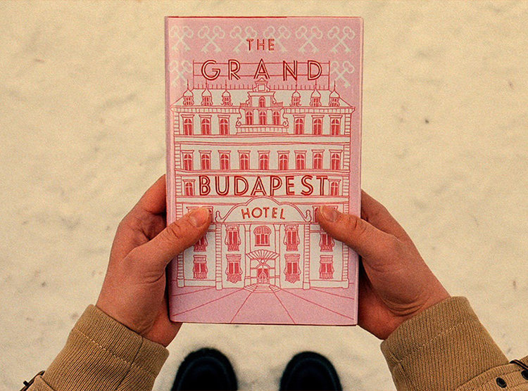 Lorsqu’Annie Atkins a commencé à parcourir le script en surlignant tous les passages qui annoncent l’utilisation d’accessoires graphiques, elle a su dès la première page qu’elle aurait besoin d’aide. Il y a notamment eu une graphiste allemande locale Liliana Lambrev qui a participé à l’aventure. En effet, dès la première scène, un livre rose bonbon