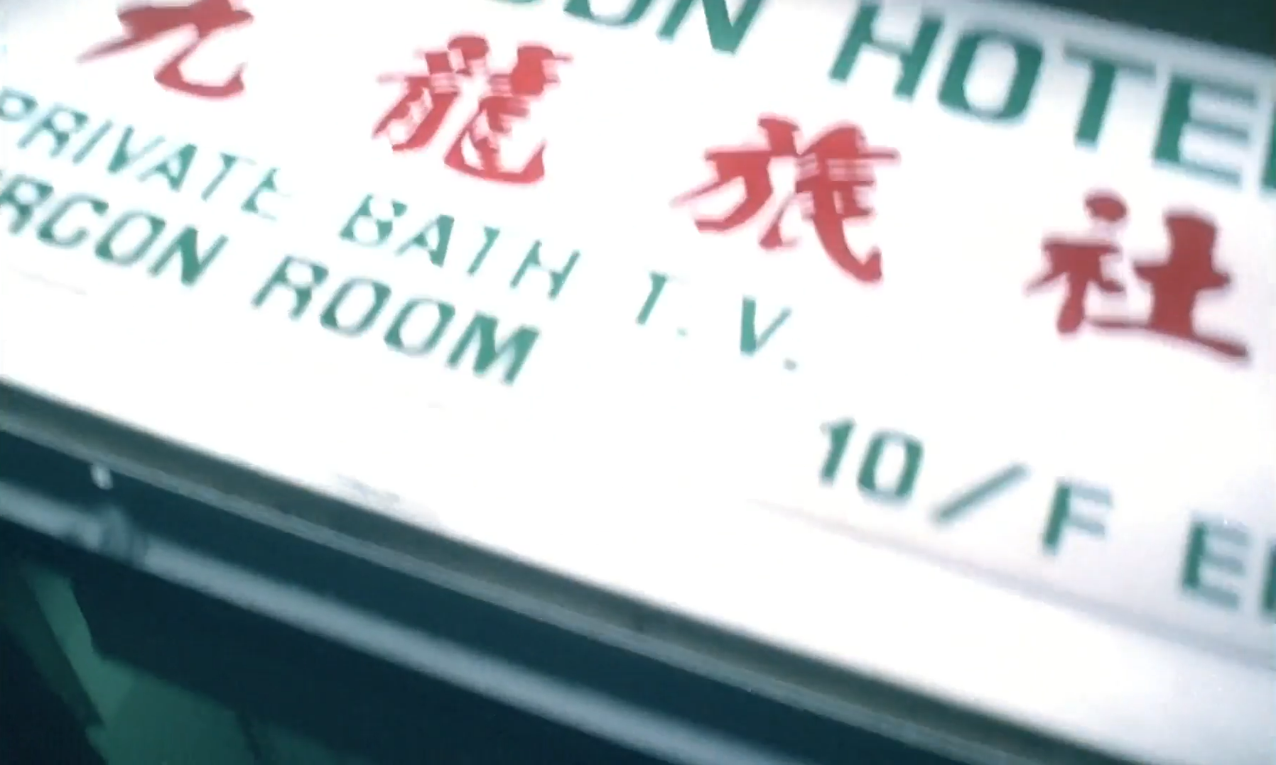 Enfin, l’esthétique fragmentée du film de Wong Kar Wai se reflètent aussi par des tableaux abstraits créés par son directeur de la photographie, Christopher Doyle, avec la technique du step-printing. En effet, cette technique de montage consiste à réduire le nombre d’images par seconde afin d’obtenir un mouvement saccadé. Cette vision surréaliste voire onirique créée par cette manipulation d’images renforce plusieurs sentiments dans le film. Il y a déjà la sensation vertigineuse que les personnages traversent dans cette ville qui bouillonnent d’informations : typographies, couleurs et foule. En effet, les scènes avec cette utilisation du step printing sont celles où les personnages se retrouvent dans les rues étroites et bondées de Hong-Kong face à leurs pensées ou dans une scène d’action (course poursuite). Ce décalage entre le personnage et le rythme effréné de la ville évoque un sentiment d’instabilité et de chaos. De plus, la notion temporelle de l’image figée en mouvement fait allusion au blocage entre le futur et le passé. En effet, il s’avère qu’à cette époque Hong Kong se situe à une période pleines d’incertitudes car la ville se prépare à la rétrocession à la Chine qui aura lieu en 1997. Rétrocession qui inquiète Wong Kar Wai sur le changement qu’elle pourrait impacter sur le visage multicurelle de la ville (d’où les nombreux plans des milieux multiculturels comme le quartier Indien).
