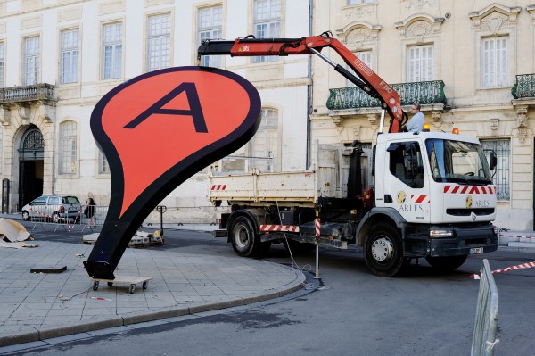Avec le projet Map, Bartholl transpose des éléments de Google Maps directement dans la ville. Il installe dans l’espace urbain des repères, des icônes ou des fragments de cartes numériques, souvent à l’endroit précis qu’ils représentent. En matérialisant ces outils de navigation, il met en évidence notre dépendance aux applications de cartographie. Le projet peut être lu comme une forme de caricature de notre rapport à l’espace : aujourd’hui, il devient difficile de se déplacer sans GPS, tant notre perception du réel est filtrée par des interfaces numériques.