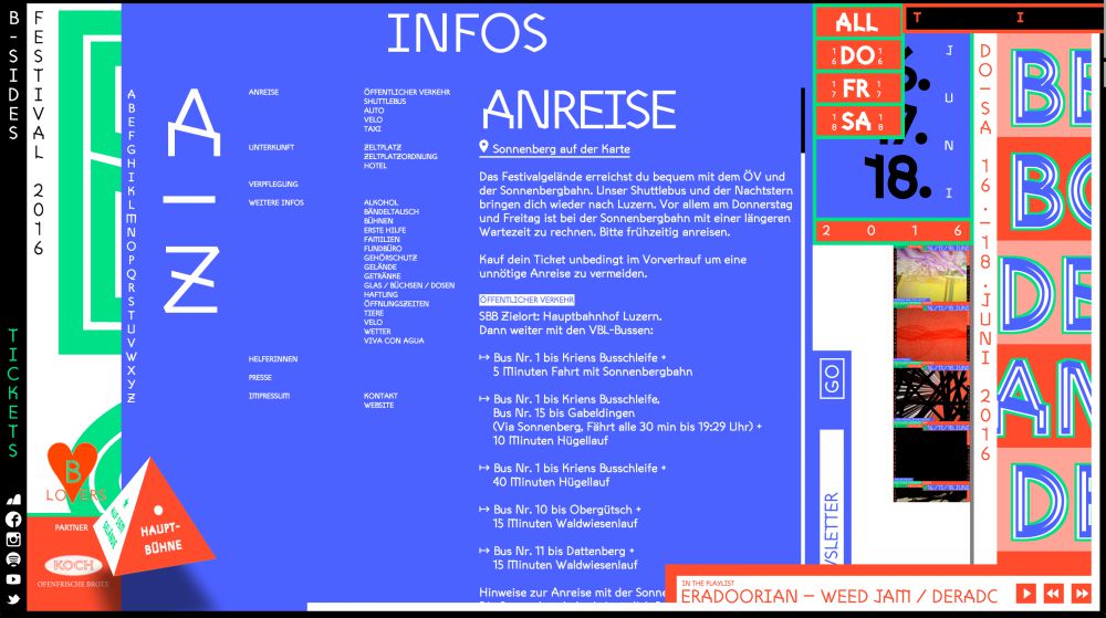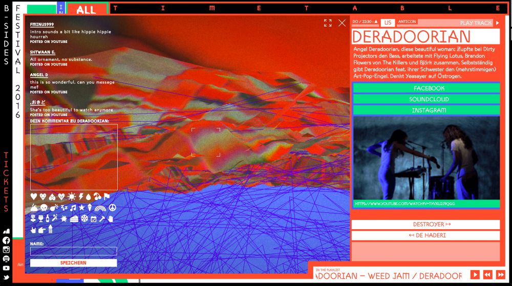 Esthétique DIY qui articule le caractère du festival et de sa programmation. Le plus impressionnant dans ce site est l'utilisation d’un algorithme qui génère l’imagerie de chaque bande individuelle.