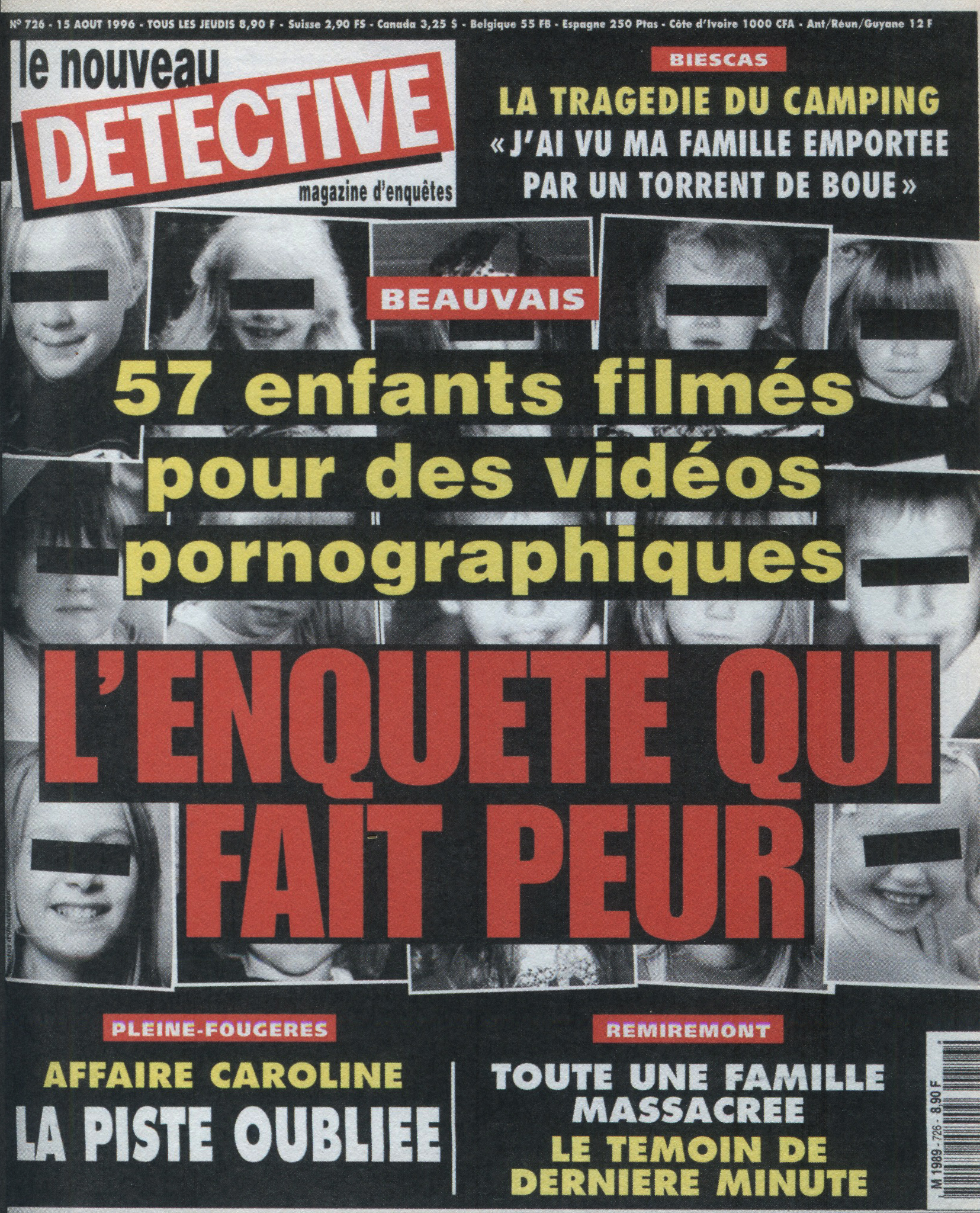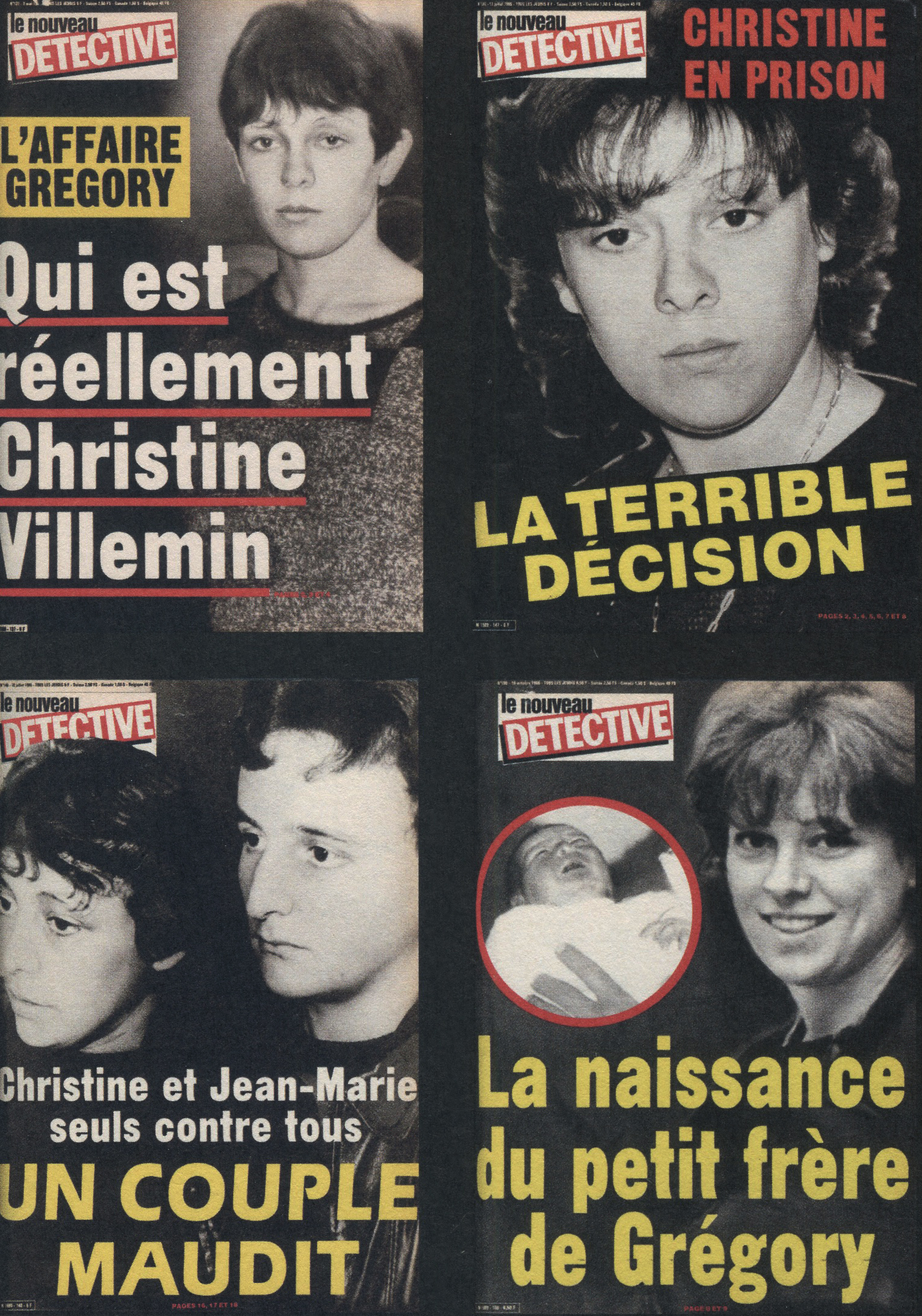 Alors, jusqu’aux années 1980, Détective avait encore un rôle clair : raconter des crimes que le lecteur ne voyait nulle part ailleurs. Mais avec l’apparition des chaînes d’information en continu, les émissions de faits divers, et les premières images amateurs des années 1990, un nouvel enjeu se présente à la revue : le crime n’attend plus le magazine. En effet, immédiateté de l’information, accès direct aux faits divers bruts, disparition du temps de l’enquête médiatique, l’information circule à grande vitesse. Cette impression se fait alors ressentir d’autant plus avec la création d’Internet. En effet, on observe un changement esthétique au niveau de la mise en page qui pourrait s’apparenter aux “blogs” des années 2000. Ce terme a été employé pour la première fois par Jorn Barger en 1997. Le blog est alors un type de site web utilisé pour la publication périodique et régulière d’articles personnels, rendant compte d’une actualité autour d’une thématique particulière. Multiples fenêtres et textes aguicheurs, le blog se construit alors autour de l’image. Ainsi, Détective affiche de nouveaux visuels plus dynamiques, tentant de s’adapter aux nouvelles attentes des lecteurs, en adoptant les “codes” des réseaux. Alors le nombre de photos dans une même couverture s’accroît à vue d’œil, quand avant l’image seule semblait naturelle. Certaines couvertures viennent d’ailleurs traiter de plusieurs affaires en même temps, en utilisant plusieurs cadres, donnant l’impression d’avoir plusieurs couvertures, plusieurs numéros, pour le prix d’un. Aussi, le photomontage se normalise de plus en plus, tandis qu’avant on osait à peine modifier les images. Gros titres, ombrés, dégradés, flèches, cadres, et même parfois pub, la revue se transforme en réel magazine. De plus, avec les années 2000, les photos apparaissent pour la première fois en couleur, ce qui n’aide pas vraiment la lecture des couvertures. Autrefois assez simples en termes de mise en page, on assiste alors à un réel chaos visuel dans une tentative de s’adapter à son temps. De ce fait, le photojournalisme de terrain s’amoindrit de plus en plus, et la couverture ne promet plus la vérité, mais promet une émotion narrative. Alors Détective met désormais en avant des crimes intrafamiliaux hyper médiatisés, des faits divers devenus “affaires” sur les réseaux, des disparitions, féminicides, récits de victimes, et continue de développer sa fascination pour les tueurs médiatisés. Mettant un peu tout dans le même panier, une surcharge d’informations se fait ressentir. Par conséquent, l’esthétique criminelle de la revue perd tout son sens, à en oublier le but même de celle-ci. Semblable à n’importe quel magazine people (Voici, Paris Match, Gala,…), Détective et la représentation du faits divers, du crime, qu’il véhicule, condamne son propre impact, montrant une certaine désensibilisation de ce dernier.