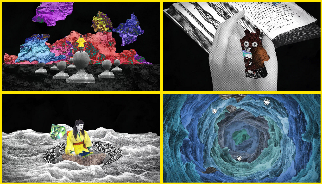 L’un des apports majeurs du mixed media dans le cinéma expérimental et le motion design réside dans sa capacité à représenter ce qui échappe aux formes de représentation classiques. Là où l’image réaliste ou strictement numérique cherche à reproduire le visible, le mixed media permet d’exprimer des dimensions plus subjectives telles que l’émotion, la mémoire, le rêve ou l’abstraction. En combinant différents médiums, images filmées, archives, dessins, collages, animations et textures, il devient possible de produire des images mentales et sensorielles, proches du fonctionnement du souvenir ou de la pensée. Le mixed média ne vise pas à reproduire une illusion du réel mais plutôt à retranscrire une expérience sensible et fragmentée. La fusion et coexistence de styles, de matières et de temporalités différentes rompt avec une continuité visuelles dites classique et permet d’ouvrir un espace d’expression. L’image peut ainsi rendre perceptibles des sensations, des émotions ou des souvenirs qui ne pourraient être représentés par une seule technique ou un seul médium. Dans cette liberté d’expérimentation on y retrouve, dans le clip musical, un espace où la narration linéaire devient souvent secondaire au profit d’une atmosphère. Le clip MARAS (2021) de Noriko Okaku en constitue un exemple significatif. L’artiste y combine collage, dessin, animation numérique et textures pour construire un univers visuel onirique et fragmenté.