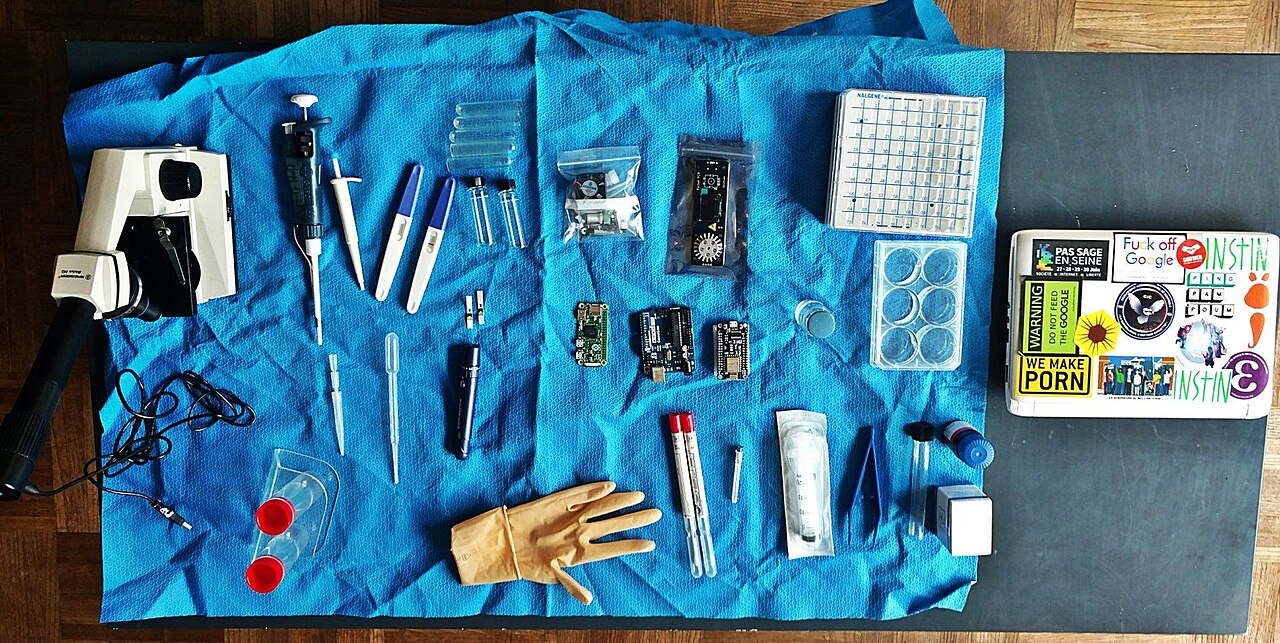 Préparation d’un kit de biohacking pour un atelier de biologie en Éducation populaire dans un café à Rennes en 2020 – Wikipédia ont vu le jour.