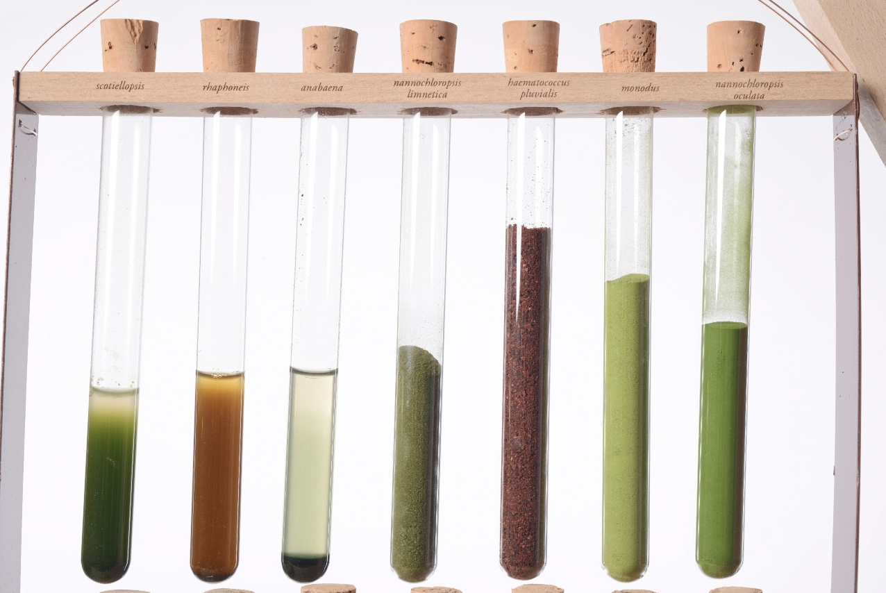 Micro-algue dans les tubes à essai (on y voit différentes teintes) – Blond&Bieber
