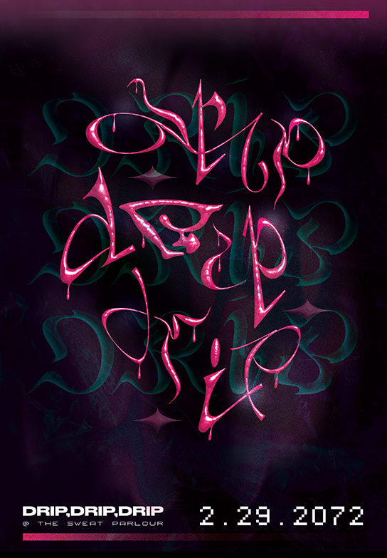 GAY TIMES Honours 2022, projet rassemblant 10 designers et 2 intelligences artificielles imaginant des affiches de soirées LGBTQ+ en 2072. Affiche créée par Michael Morton, inspirée des flyers rave des années 1990, utilisant typographie expérimentale et rendu 3D aux couleurs vibrantes. qui imaginent des affiches de soirées se déroulant en 2072, explorant ainsi la vie nocturne LGBTQ+ du futur comme espace inclusif, sûr et créatif. L’affiche de Michael Morton, inspirée des flyers rave des années 1990, emploie une typographie fragmentée et illisible qui fait du texte un corps graphique mutant, reflet de la multiplicité des identités queer. Les formes de lettres diversifiées et le rendu 3D en couleurs vibrantes traduisent visuellement la non-fixité des genres et des désirs, transformant l’annonce de soirée en manifeste esthétique. Cette projection spéculative vers 2072 utilise le sexe et la culture nocturne comme espace de liberté future, où les corps queer continueront de se rassembler hors des normes diurnes hétérosexuelles. Le choix d’imaginer des clubs fictifs cinquante ans plus tard affirme que la culture de la fête gay n’est pas une phase transitoire mais un futur durable et expansif, ancrant politiquement le désir homosexuel dans l’avenir.