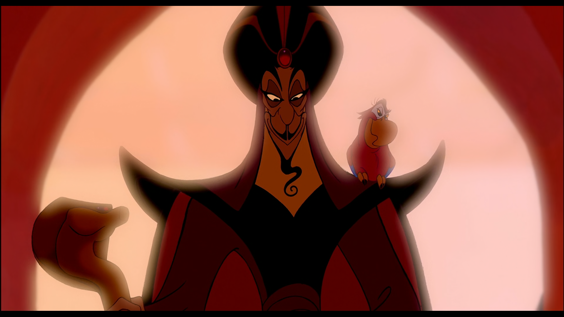Passons maintenant au deuxième film Disney que j’ai choisi, « Aladdin », un film d’animation sorti en 1992. Dans ce long-métrage, on va suivre les aventures d’un jeune garçon pauvre, Aladdin, et de son singe Abu. Le jeune homme va rencontrer par hasard la princesse Jasmine, dont il va tomber follement amoureux, mais ce n’est malheureusement pas un grand prince, ce qui rend impossible son amour. Son objectif va être de conquérir le cœur de sa bien-aimée, grâce à l’aide d’un génie. Cependant, un obstacle va rapidement se mettre sur sa route, cet obstacle a pour nom le Grand Vizir Jafar, un sorcier diabolique qui convoite le trône du Sultan.