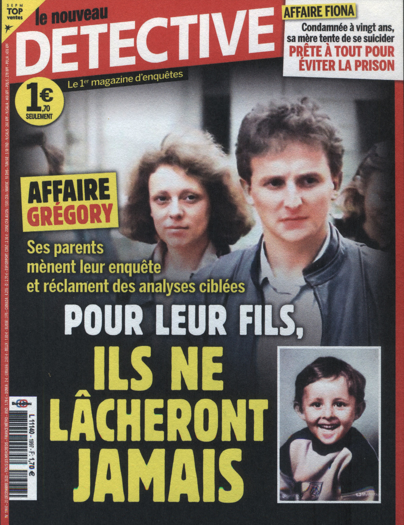Comme susmentionné, les années 1970 – 1980, marquent un basculement net dans ce qu’on pourrait qualifier de mutation politique, sociale et médiatique pour Détective. Dépeignant une société fragmentée et anxieuse au vu des récents enjeux sociétaux (mai 68, crises économiques, montée du chômage, des inégalités, sentiment d’insécurité,…), la revue met principalement en avant crimes urbains, délinquance juvénile, violence sociale, et institutions débordées dans ses unes. Des thèmes récurrents, accompagnés de numéros traitant des tueurs en série, crimes sexuels, enlèvements, … On dénote alors une forte montée des crimes de femmes et d’enfants. En effet, le délit envahit le quotidien domestique : drames familiaux, crimes conjugaux, violences sur enfants, … faits divers n’est plus de l’ordre de l’affaire singulière, hors du commun, mais se banalise et devient ordinaire. Au niveau des choix graphiques, on observe alors des décisions photographiques surprenantes. Modèles en lingerie, canons de beauté à moitié dénudés, et nouvelles horrifiantes, les corps presque nus, au physique “parfait”, aussi étrange soit-il, cohabitent avec des titres plus sinistres les uns que les autres. Féminicides, prostitution, crimes comis par des femmes, viols… Ces sujets n’étaient pas autant représentés auparavant, du moins pas à la une. Ils apparaissent par conséquent en même temps que ces mêmes images “sexualisant” la femme. Dans le choix des mises en page, on ressent aussi la volonté de choquer le lecteur. Titrage beaucoup plus familier, Détective donne la parole aux victimes, mais aussi aux accusés. Se rapprochant de ce qu’on pourrait caractériser de “magazine people”, les images et les titres “choquent” non plus par leur violence criminelle, mais par la recherche unique du scandale, du provoquant, du dérangeant. Ces accroches occupent alors de plus en plus d’espace sur la couverture, massifs, absorbant totalement le nom de la revue, pour parfois ne laisser qu’un petit cadre où l’on aperçoit des portraits très saturés et autres. Mais à partir des années 1970, c’est surtout Angelo di Marco, célèbre illustrateur français, qui collabore avec le journal jusque dans les années 1980. En effet, réalisant des dizaines et des dizaines de couvertures pour le magazine, di Marco dessine des scènes réalistes, rejouant les crimes de la une. Souvent en cours ou imminent, les corps sont tendus, les gestes figés, juste avant ou juste après l’acte. Alors, l’entrée dans une sorte de “culture de la reconstitution” paraît comme l’aboutissement logique de Détective pour l’époque. Le fait divers, repensé comme une fiction plausible, quitte la piste de la “photo-documentaire”, et interroge une certaine désensibilisation du crime. L’illustration au centre de la couverture, en pleine page, bien que les titres restent massifs, on en oublie de ce fait ce qui l’entoure. Même le rouge vif, toujours présent et assez contrastant, s’abandonne dans les lavis de di Marco. Alors, la construction d’un imaginaire de la menace permanente s’installe progressivement dans la revue. Changeant d’ailleurs de nom pendant toute cette période di Marco, pour se nommer “Qui ? Police”. Ainsi, à la fin des années 1980, le journal rechange de nom, et devient “Le nouveau Détective”, pour ensuite afficher une nouvelle couleur à la une, notamment avec l’affaire du petit Grégory, qui a entraîné une multitude de couvertures pour Détective : le jaune. Une couleur à la lourde signification dans la presse puisqu’on l’associe souvent au “journalisme jaune”, un type de journalisme qui présente des nouvelles de faible qualité et qui mise sur des techniques tape-à-l’œil afin de se vendre davantage. Une association alors pas si insensée pour la revue de faits divers, puisque bien qu’elle ai eu un véritable succès commercial dans les années 1930, les ventes avaient diminuées. Alors la recherche de choc passe notamment par la couleur. Avec l’affaire du petit Grégory, on observe même la réapparition de quelques “images-chocs”, comme la découverte du corps de l’enfant.