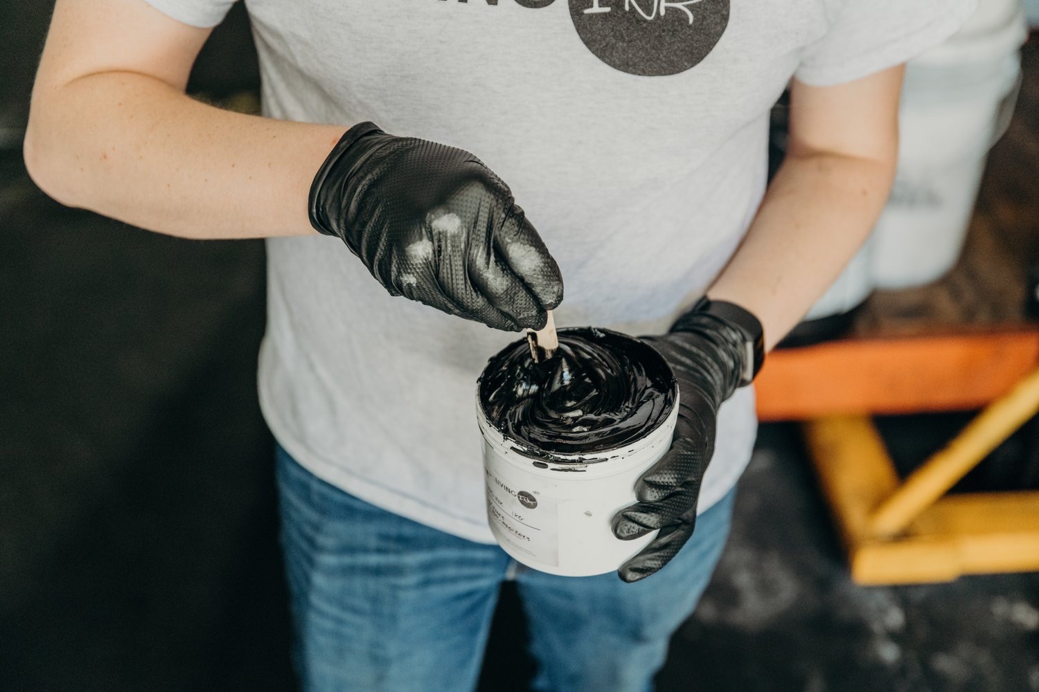 Ensuite, les encres industrielles et publicitaires du XXe siècle, riches en solvant et en pigments métalliques ont eu des effets directs sur les designers. Certains (par exemples les professionnels travaillant la sérigraphie, ou l’impression offset) ont donc souffert d’irritation des voies respiratoires, d’allergies ou encore d’intoxication chroniques. Les designers ont donc cherché des solutions afin de pallier à ce problème de contact avec ces encres nocives. Ils ont donc travaillé dans des pièces ventilées, porté des gants, des masques.