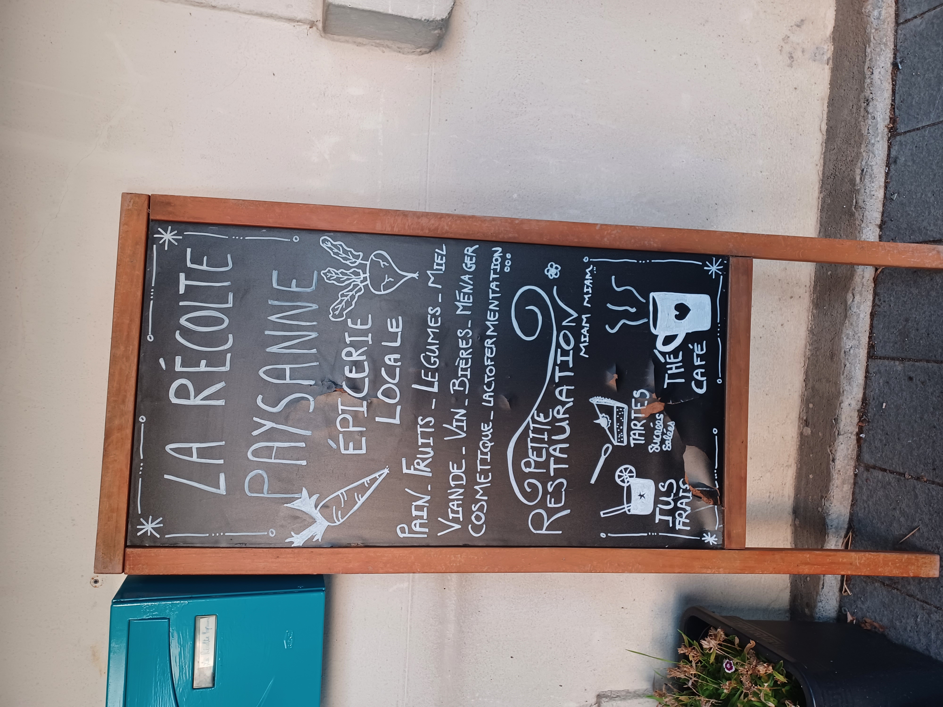 Tableau noir personnalisé à la main pour une petite épicerie locale en ruralité.