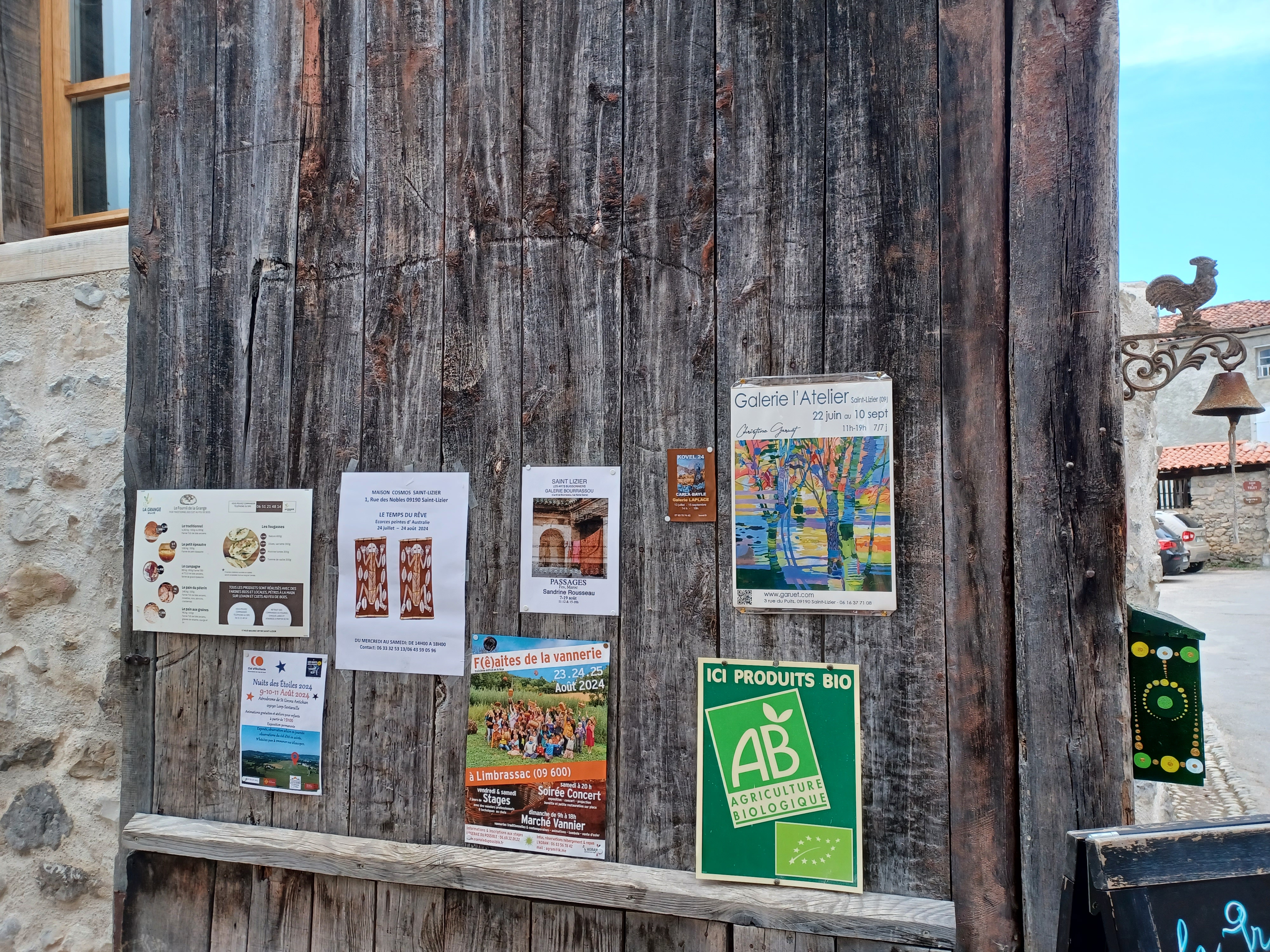 Ces derniers sont organisés par de petites associations tenues notamment par les producteur·ices de ces-mêmes marchés. Il s’agit, toujours dans un esprit de solidarité, de comprendre les besoins de son environnement pour favoriser des activités locales : « le logo et les étiquettes de la brasserie des 3 seigneurs, Logo de la Brasserie des 3 seigneurs située à Soulan en Ariège. les affiches de promotion des marchés de producteurs locaux et leurs événements festifs(…)Affiche pour annoncer un des marché festif de Soueix. je l’exerce uniquement l’hiver si j’ai du temps libre et que les projets demandés me plaisent. Ce qui est le plus important pour moi c’est de rendre service, comme il n’y a pas de graphiste je dis souvent oui et je me débrouille pour trouver le temps de répondre à la demande ».