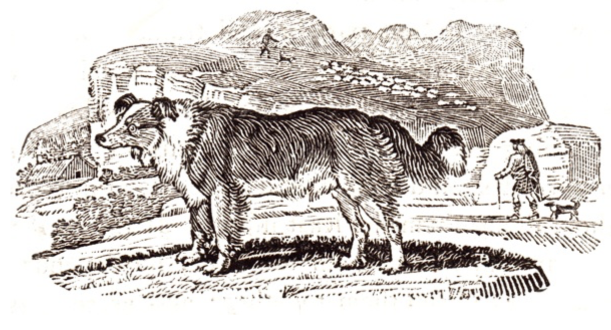 A General History of Quadrupeds, représentation de chien de berger, Thomas Bewick, 1790, il intègre des détails contextuels qui permettent d’identifier les environnements spécifiques où ces chiens évoluent, tels que des paysages de champs ou des scènes rurales. Ces éléments ajoutent un contexte qui aide à comprendre le rôle social et pratique du chien dans la société de l’époque. Les chiens de chasse, souvent représentés dans une pose élégante et alerte, bénéficient également d’une attention particulière à leur posture, accentuant leur appartenance à la noblesse.