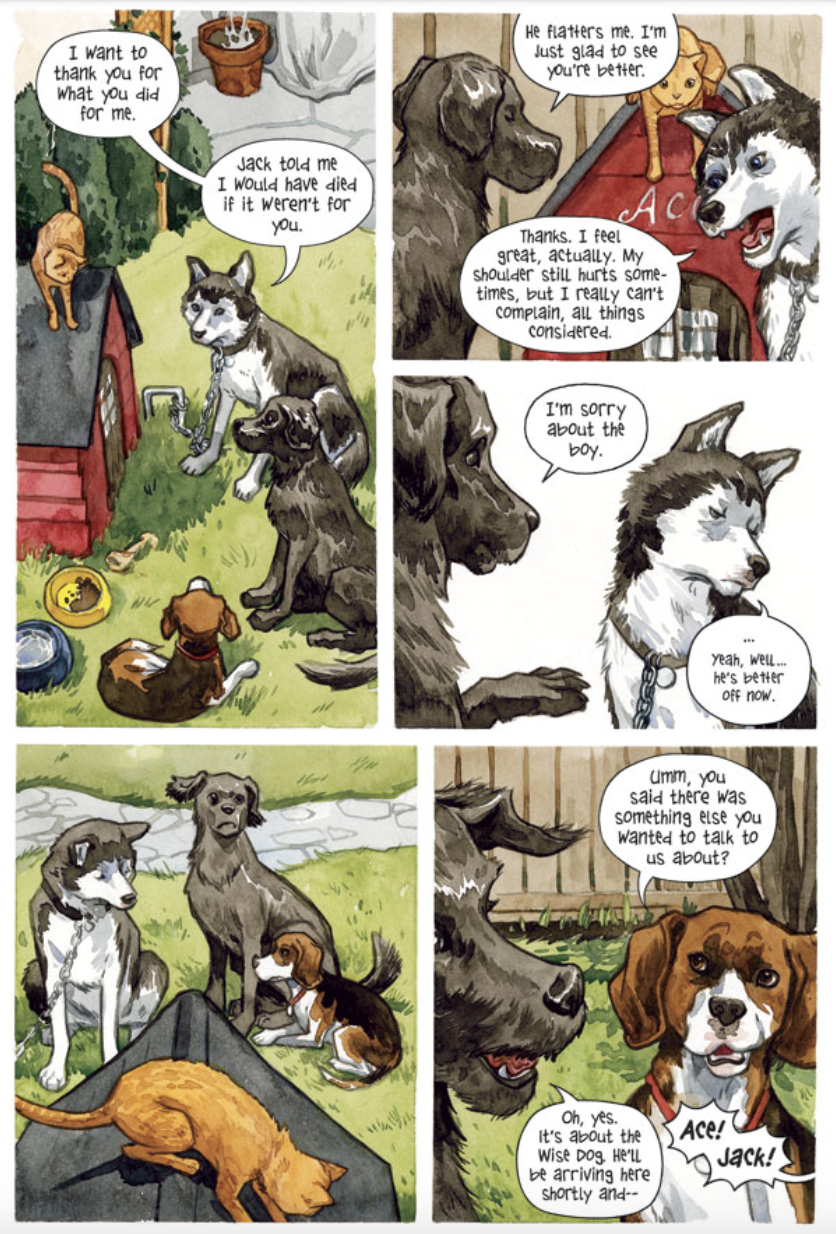 Jill Thompson, aquarelliste renommée, donne une profondeur émotionnelle et un réalisme saisissant à chaque personnage canin, grâce à son travail minutieux sur les textures et les expressions. ↩︎