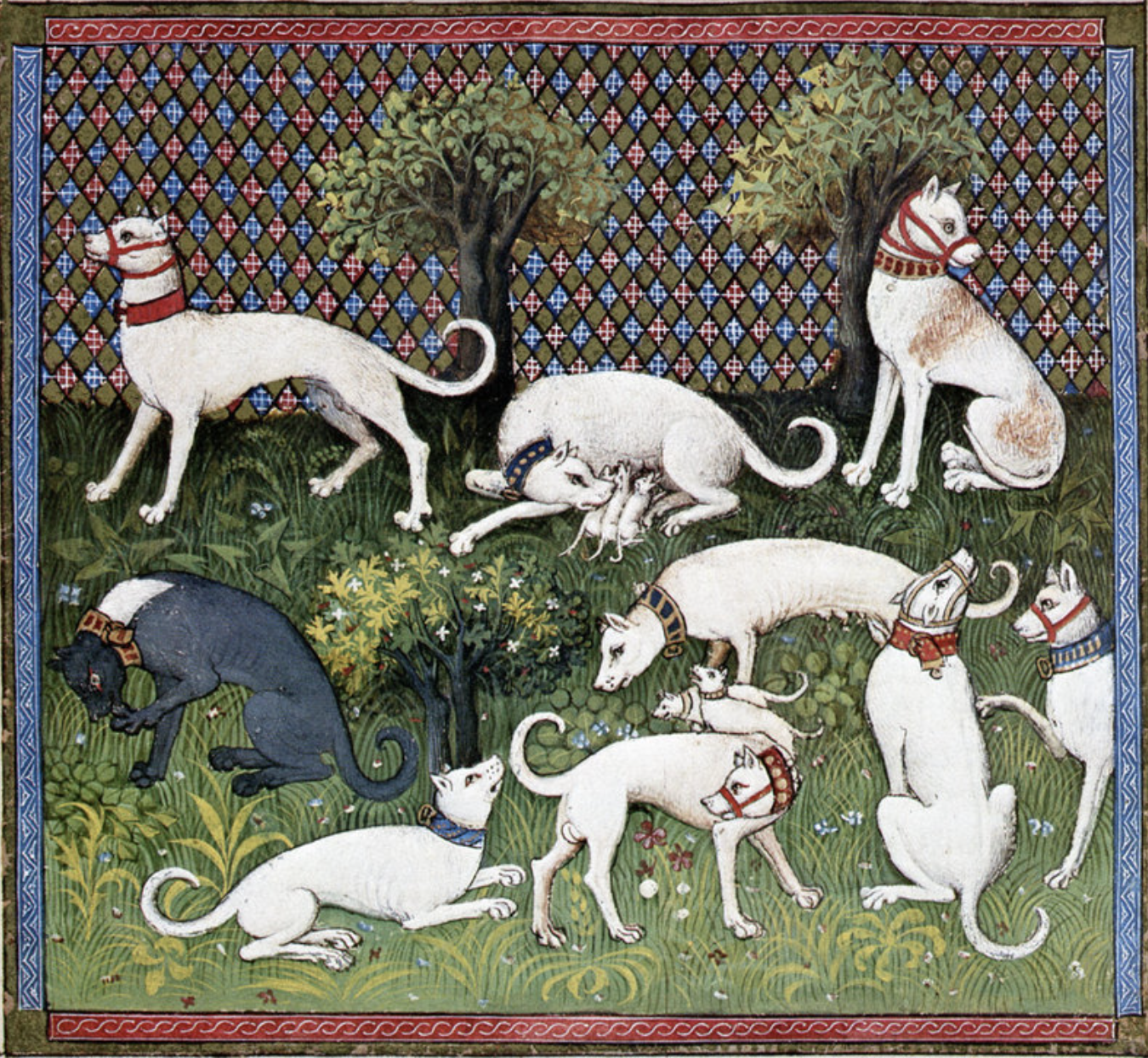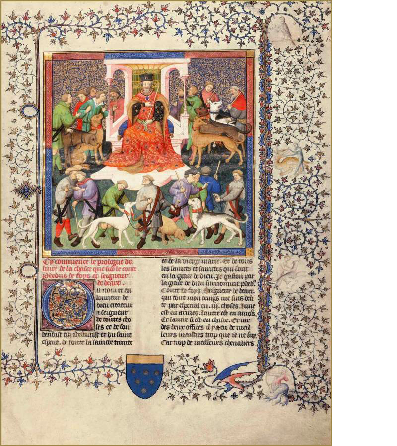 Un des exemples les plus frappants de l’importance du chien dans l’illustration médiévale se trouve dans Le Livre de chasse2 , un traité écrit par Gaston Fébus, comte de Foix, entre 1387 et 1389.