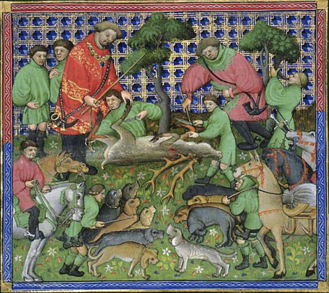 Gaston Fébus, comte de Foix, était un prince lettré et chasseur. Ce traité, considéré comme un chef-d’oeuvre de la littérature cynégétique médiévale, est aussi remarquable pour ses enluminures détaillant diverses races canines et techniques de chasse médiévales. ↩︎