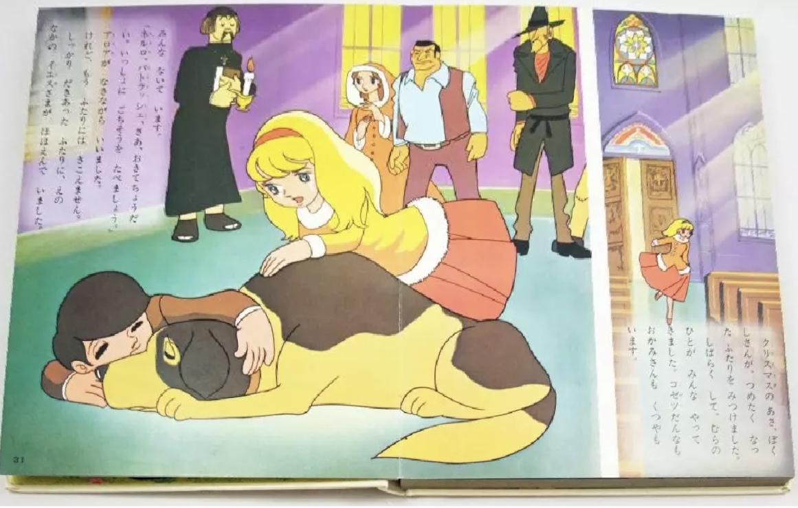 De manière comparable, dans Un Chien des Flandres, les illustrations présentent le chien Patrasche comme une figure tragique de fidélité et de dévouement. Sa mort aux côtés de son maître Nello