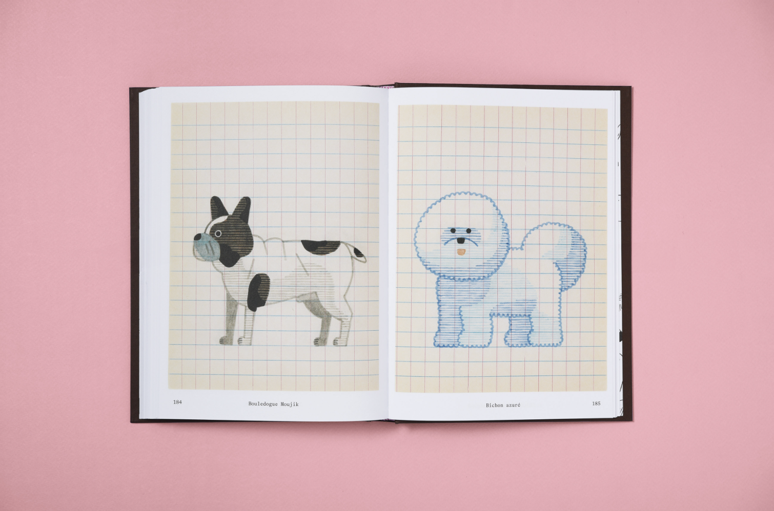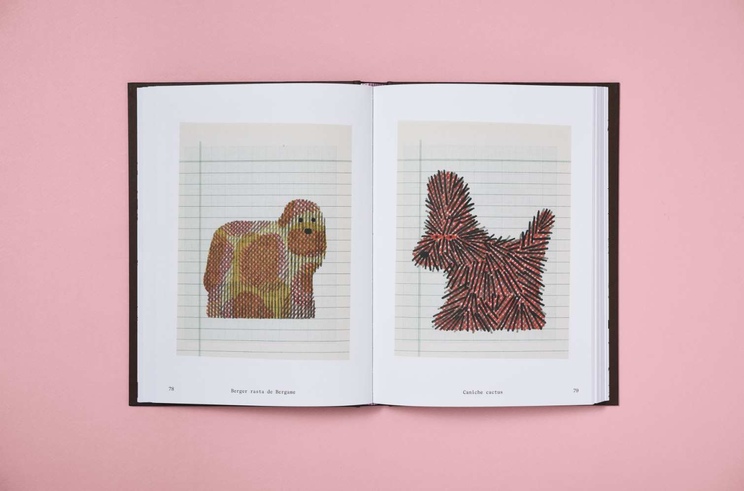 Dans un registre différent, Chiens de Jochen Gerner28, publié aux éditions B42, propose un inventaire chromatique où la figure canine est explorée sous un angle à la fois amusant et artistique. Réalisé au feutre, ce livre