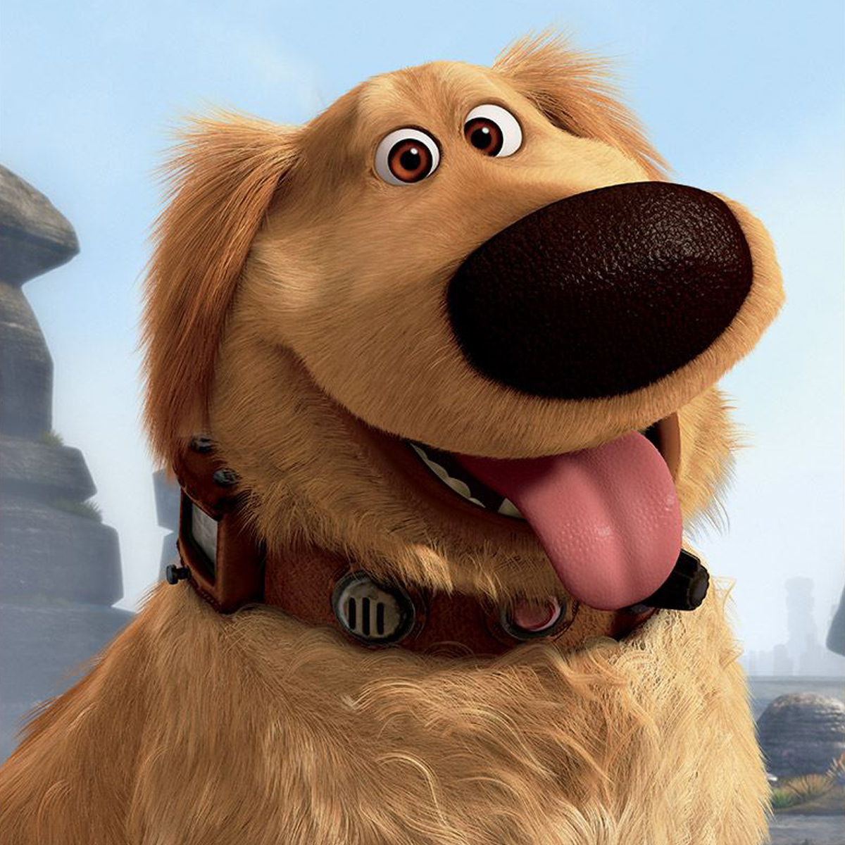 Dug, personnage du film Up (Là-haut. Pixar a travaillé sur le collier traducteur de Doug pour donner une voix aux pensées simplistes et attachantes d’un chien, renforçant sa dimension comique et émotive. La loyauté de ce personnage envers les autres personnages, ses interventions comiques et son regard toujours attentif renforcent son rôle de soutien moral pour les protagonistes humains.