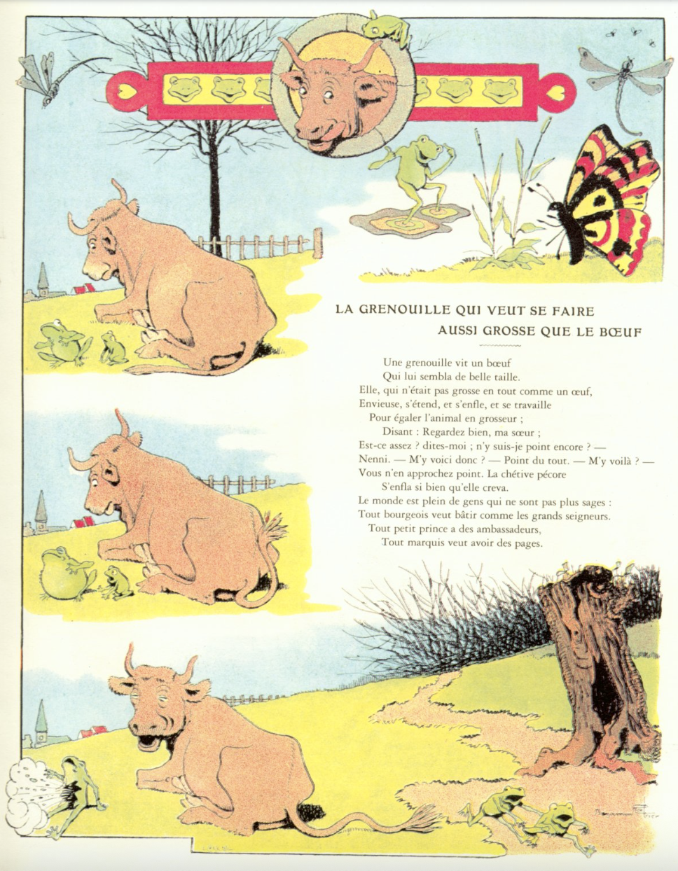 Ce changement s’explique par l’évolution du contexte éditorial et culturel. Au tournant du XXe siècle, la fable n’est plus uniquement un outil moral destiné à une élite ou à l’éducation princière, mais devient un récit illustré populaire, adressé principalement aux enfants. Rabier, connu pour son trait humoristique et ses animaux expressifs (comme La vache qui rit