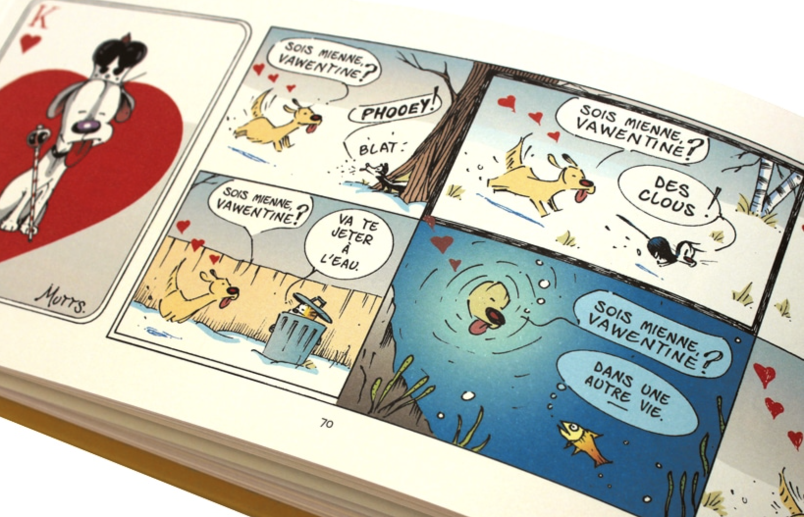 Inspiré des strips classiques comme Peanuts, Patrick McDonnell utilise des dessins simples et poétiques pour explorer les relations entre animaux et humains ↩︎