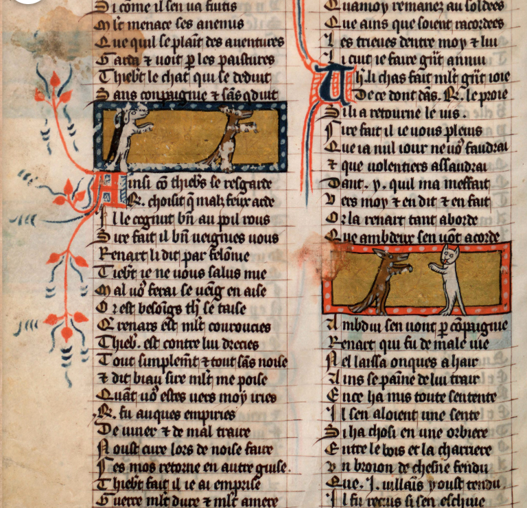 Le Roman de Renart est un manuscrit enluminé, France, vers 1300–1325, Paris, Bibliothèque nationale de France, département des Manuscrits, Français. Consultable en ligne sur Les Essentiels de la BnF. ↩︎