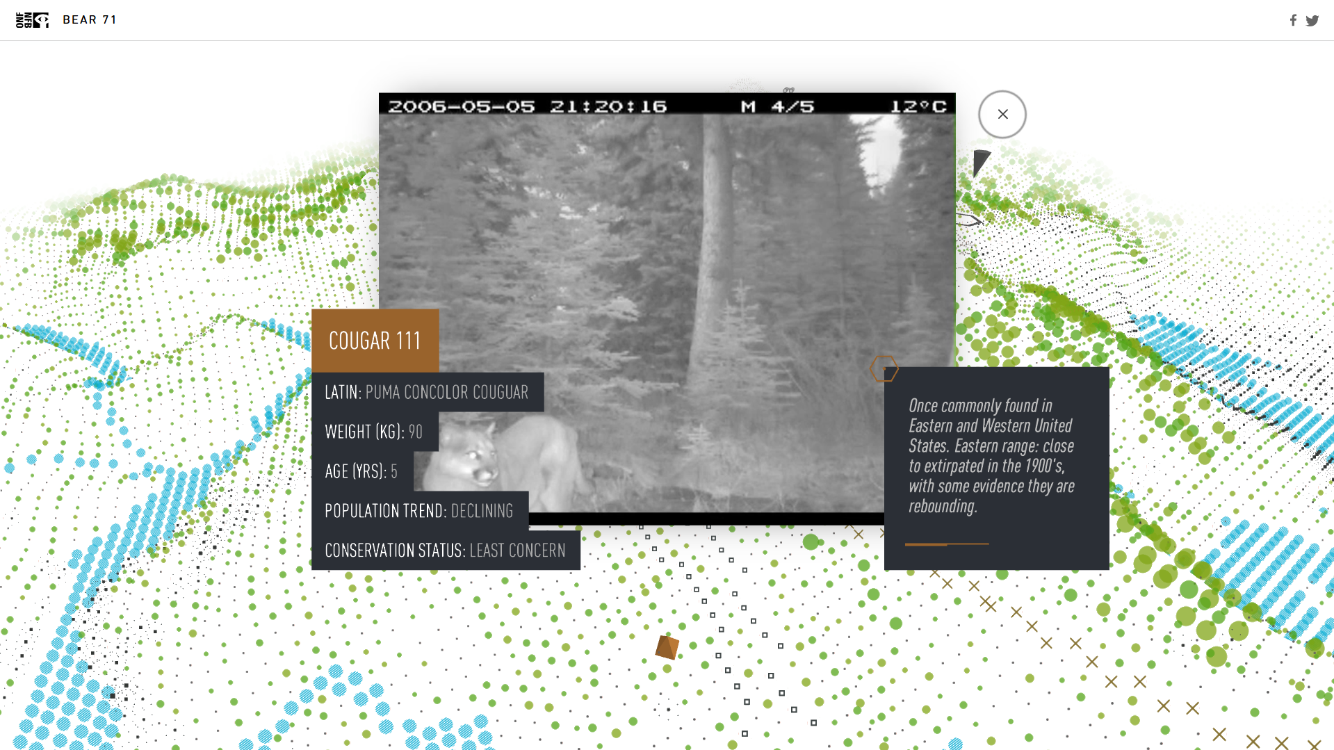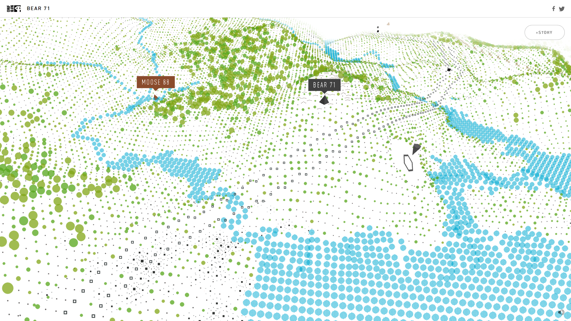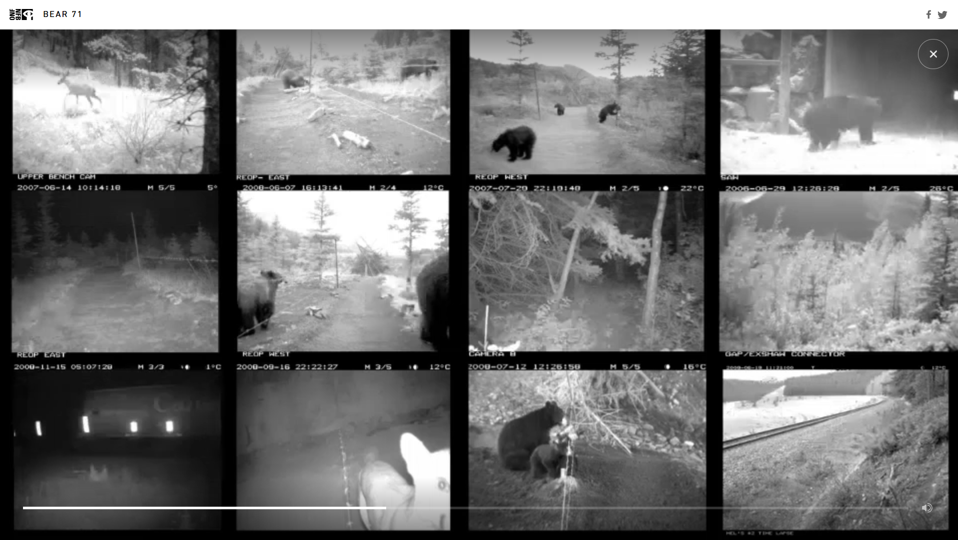 The Bear 71 retrace donc la vie d’une femelle grizzly qui a été identifiée par l’office de la conservation de la nature de 2001 à 2009. Grâce à des milliers de séquences vidéos et d’images capturées sur le terrain. Ce webdocumentaire nous montre la vie de cette ours mais aussi de tout son environnement.