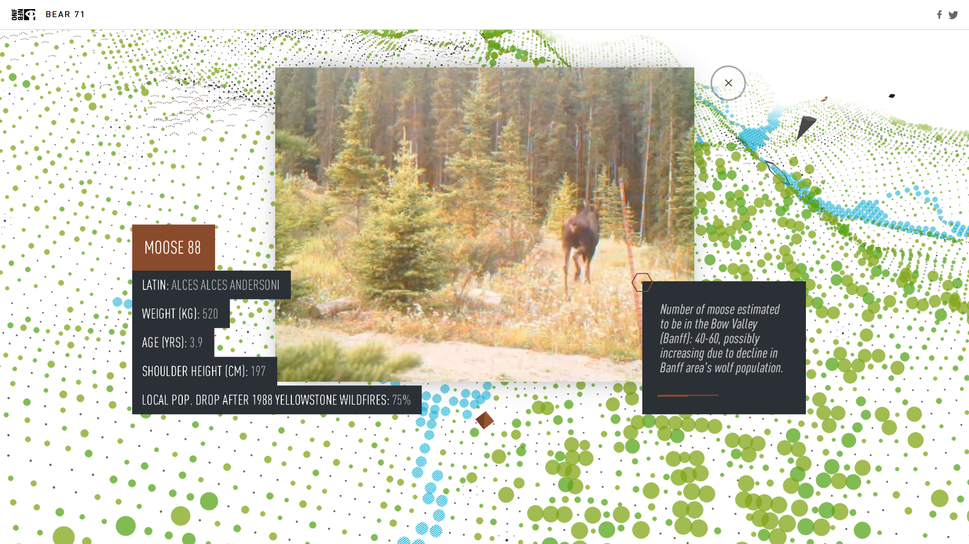 [fig. 12] Interface lorsque nous appyons sur un icône (animal) de la carte intéractive, The Bear 71.