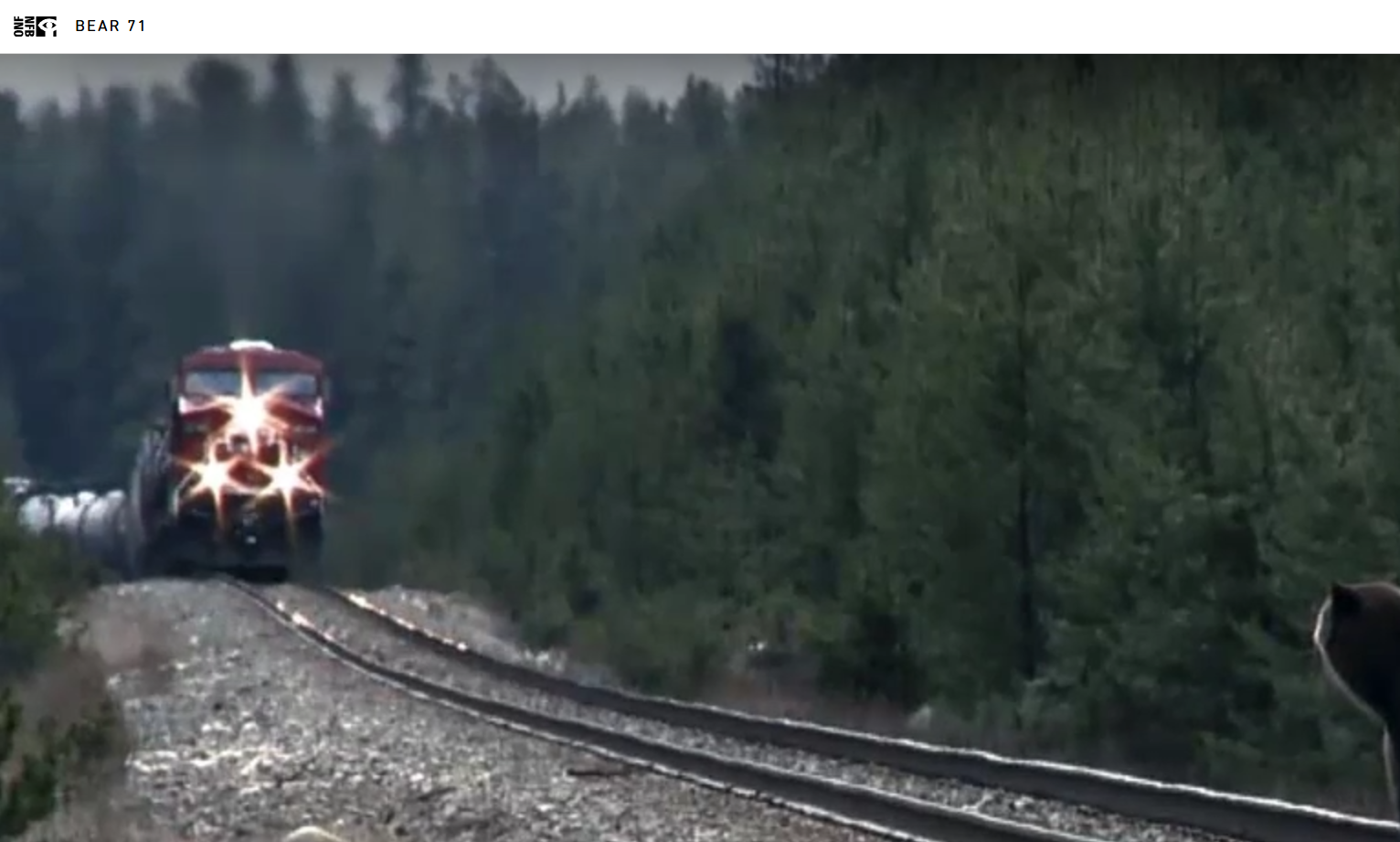 The Bear 71 est un webdocumentaire réalisé par Jeremy Mendes, Leanne Allison et l’ONF (l’Office National du Film du Canada). Il est accessible sur un site web3. Créé en 2012 il est pensé sous l’environnement Flash. Ce qui fait qu’en 2016 il a nécessité un portage pour sa remise en ligne en HTML5.
