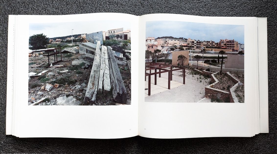 Dès l’ouverture du livre, on remarque que la mise en page, éditée par Hazan, adopte une approche d’inventaire, transformant le recueil en un documentaire méthodique. Inspirée par des photographies objectives comme celles des Becher, la présentation des images suit une organisation qui reflète un classement précis des paysages. Les photos sont disposées selon des critères clairs, guidant le lecteur à travers une logique visuelle variée sur le territoire français. L’utilisation de bandes crée une fluidité et une cohérence qui facilite la navigation entre les différents formats de paysages, tout en conservant un équilibre visuel. Les espaces blancs entre les images renforcent l’aspect méthodique de l’inventaire visuel, chaque cliché devenant un élément d’un ensemble cohérent. Les légendes, discrètes et informatives, complètent de manière contextuelle sans perturber la perception des images, ajoutant une dimension supplémentaire à ce travail d’archivage. Ainsi, ce recueil se présente comme un outil d’analyse typologique et un inventaire visuel du paysage français, organisé de manière à refléter les évolutions sociales et géographiques à travers le regard du photographe. Les photographes impliqués ont su capturer les différentes réalités territoriales, y compris les banlieues et les zones déformées, saisissant ainsi les signes de changement, que nous pouvons lire aujourd’hui, des décennies plus tard, grâce à cette édition précise.