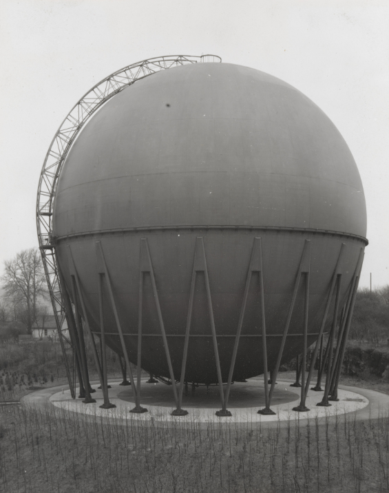 © BECHER Bernd et Hilla, Gas Tank Sphere, 1963. comme des tours d’extraction, haut fourneaux et fours calcaires. Le binôme s’attelle à d’autres types de bâtiments comme dans Water Towers