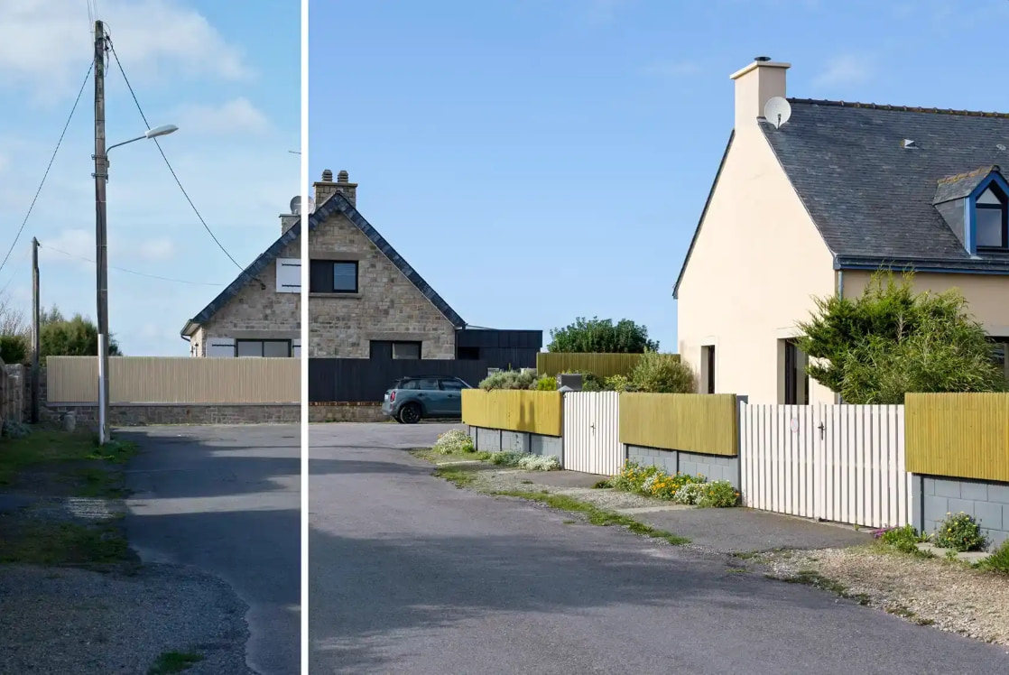 © BONNEL Guillaume, Traversées photographiques, 2022. La ligne verticale délimite mais fait coexister deux temporalités : le passé et le présent. De cette manière, il rend visibles les interstices, les marges et les zones de transition, de l’aménagement du territoire. Ce projet résume, selon moi, toute la singularité de sa pratique : celle d’un arpenteur du réel, qui fait de la photographie un langage critique de ce qui nous entoure. Pour approfondir le dialogue autour de ces questions, un entretien avec Guillaume Bonnel a été envisagé afin d’apporter un éclairage complémentaire. (Les questions préparées pour cet échange figurent en annexe, servant de guide d’entretien.) Les résultats éventuels de cet entretien seront intégrés dans la version éditorialisée de ce mémoire.