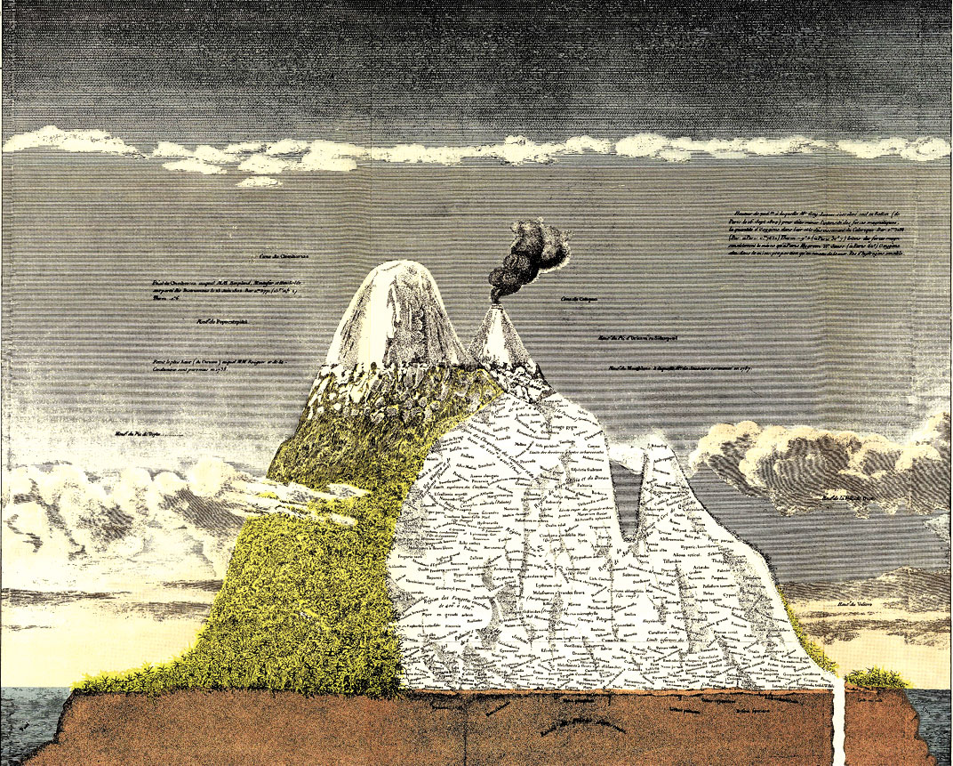 Je retourne au port puisqu’un autre exemple remarquable se trouve sur l’île voisine. La carte d’Alexander von Humboldt, Géographie des plantes des pays tropicaux : étude des Andes (1807)