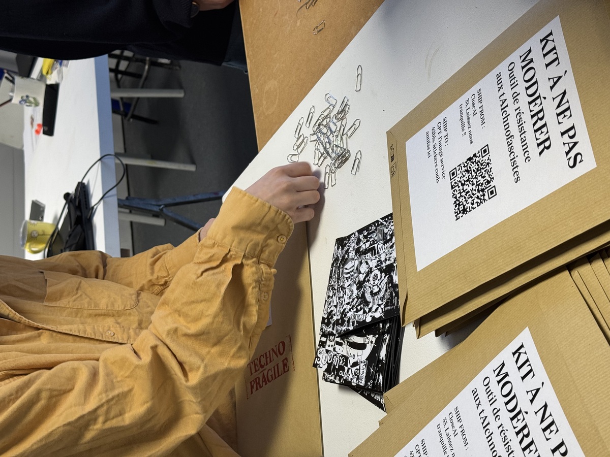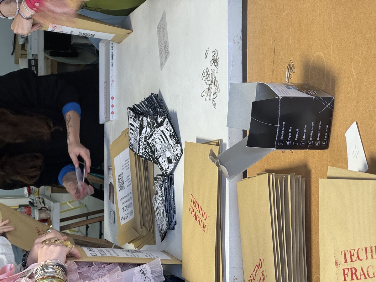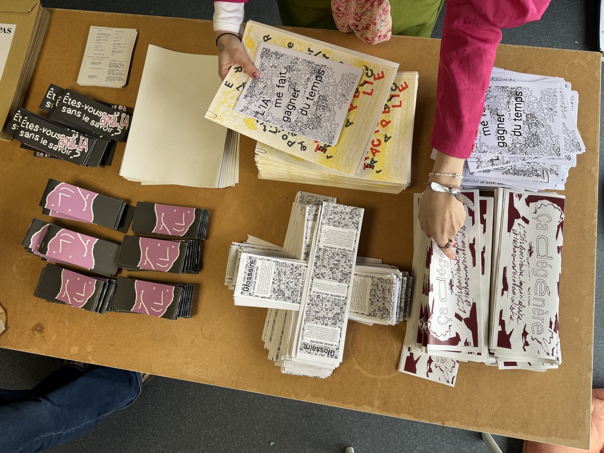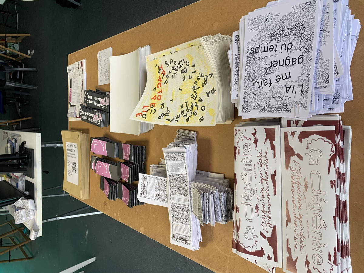 Delyo Dobrev, designer graphique et développeur, a accompagné les étudiant·es dans un temps de travail collectif autour de la fabrique d’un projet éditorial tendu entre ces deux enjeux majeurs de notre temps que sont l’IA et la montée du technofascisme.Mise en pages web to print :
